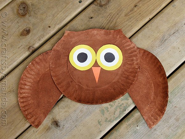 Paint a couple of paper plates brown then affix the eyes and beak for this simple project. Feel free to use this owl pattern to make this Paper Plate Owl fall craft even easier.