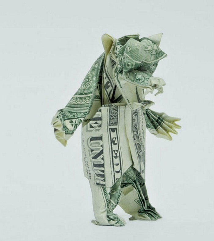 Weird isn t it? It s a bear made from American money. Not only that, but it is a bear than appears extremely comfortable on its hind legs for a prolonged period of time. It could be wearing a vest. SO why is it a bear again?