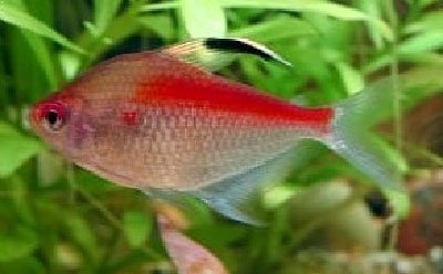 The Bleeding Heart Tetra is a deep-bodied tetra that grows to 2 inches and must be kept in groups. They should be maintained only with other peaceful fish, including Angelfish. The Bleeding Heart Tetra's common name comes from the blood-red splotch on the fish's side just behind the gills.The males have an interesting dorsal fin; it's large and sharply swept back. These fish tend to be rather skittish, and you may see them swim frantically to and fro on occasion.