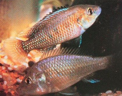 The Egyptian Mouthbrooder, which originates from the Nile River, will grow to 2.5 inches in length and is well suited for most community tanks. This small cichlid is very peaceful as long as its companions are too large for it to swallow.
