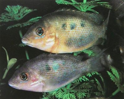 A member of the large, popular cichlid family, the Orange Chromide grows to about 3 inches and fits comfortably in most community tanks. Although a hardy species overall, very small individuals are sometimes susceptible to fungus in pure fresh water.