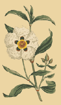 One of the most ornamental hardy shrubs we possess, at once pleasing to the eye, and grateful to the smell, for, as Miller observes, the whole plant in warm weather exudes a sweet glutinous substance, which has a very strong balsamic scent, so as to perfume the circumambient air to a great distance.Its blossoms, which appear in June and July in great profusion, exhibit a remarkable instance of quickly fading beauty, opening and expanding to the morning sun, and before night strewing the ground with their elegant remains as each succeeding day produces new blossoms, this deciduous disposition of the petals, common to the genus, is the less to be regretted.Is a native of Spain and Portugal, prefers a dry soil and warm sheltered situation, and in very severe seasons requires some kind of covering.Cultivated 1656, by Mr. John Tradescant, jun. Ait. Hort. Kew.Is readily increased from cuttings, but Miller remarks, that the best plants are raised from seeds.Varies with waved leaves, and in having petals without a spot at the base.Is not the plant from whence the Ladanum of the shops is produced, though affording in warmer countries than ours a similar gum, hence its name of ladanifera is not strictly proper.