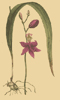 For this rare plant I am indebted to the very laudable exertions of a late Gardener of mine, James Smith, who, in the spring of the year 1788, examining attentively the bog earth which had been brought over with some plants of the Dionaea Muscipula, found several small tooth like knobby roots, which being placed in pots of the same earth, and plunged into a tan pit having a gentle heat, produced plants the ensuing summer, two of which flowered, and from the strongest of those our figure was taken.From this circumstance we learn, that this species is a native of South Carolina, and properly a bog plant, growing spontaneously with the Dionaea Muscipula.Both Mr. Dryander and Dr. J. E. Smith assure me, that it is the true Limodorum tuberosum of Linnaeus, the one usually called by that name is a native of the West Indies, and treated as a stove plant.From the little experience we have had of the management of this species, it appears to us to be scarcely hardy enough for the open border, yet not tender enough to require a stove. We have succeeded best by treating it in the manner above mentioned, we may observe, that the tan pit spoken of was built in the open garden, not in a stove, and was for the purpose of raising plants or seeds by a gentle heat, as well as for striking cuttings and securing plants from cold in the winter.Our figure will make a description of the plant unnecessary, its flowering stem with us has arisen to the height of a foot and a half, the number of flowers has not exceeded five. In its most luxuriant state it will probably be found much larger, and to produce more flowers.