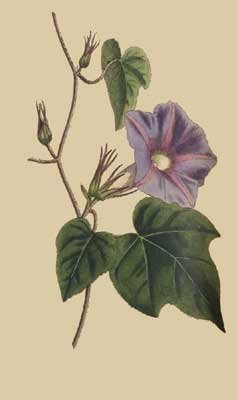 All our writers on exotic botany treat of this plant, Gerard, one of the first, gives us the following account This beautiful Bindweed, which we call Convolvulus C?ruleus, is called of the Arabians Nil of Serapio, Hab al nil, about Alepo and Tripolis in Syria, the inhabitants call it Hasmisen, the Italians Campana azurea, of the beautifull azured flowers and also Fior de notte, bicause his beautie appeereth most in the night he informs us, that it grew in his garden, but perished before it ripened its seeds. Parkinson says, it thrives remarkably well in our country, if the year be any thing kindly Miller informs us, that it is a native of Africa and America, extols it as one of the most beautiful of the genus, observes, that it is a very distinct species from the purpurea, of which it has been considered by some as a variety, that it will grow to the height of eight or ten feet, that in favourable seasons the seeds will ripen in the open air, and that it requires the same treatment as other annuals usually raised on a hot bed. Mr. Aiton considers it as a stove plant, as indeed most of our tender annuals properly are.It flowers from July to September.Though apparently common in our gardens formerly, it is now very rarely met with.