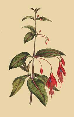 The present plant is a native of Chili, and was introduced to the royal gardens at Kew, in the year 1788, by Capt. Firth, it takes the name of Fuchsia from Fuchs a German Botanist of great celebrity, author of the Historia Stirpium in folio, published in 1542, containing five hundred and sixteen figures in wood, and which, though mere outlines, express the objects they are intended to represent, infinitely better than many laboured engravings of more modern times.Every person who can boast a hot house will be anxious to possess the Fuchsia, as it is not only a plant of peculiar beauty, but produces its rich pendant blossoms through most of the summer, the petals in the centre of the flower are particularly deserving of notice, they somewhat resemble a small roll of the richest purple coloured ribband.Though this plant will not succeed well in the winter, nor be easily propagated unless in a stove, it will flower very well during the summer months, in a good greenhouse or hot bed frame, and though at present from its novelty it bears a high price, yet as it is readily propagated, both by layers, cuttings, and seeds, it will soon be within the purchase of every lover of plants.Mr. Lee, of Hammersmith, we understand first had this plant for sale.