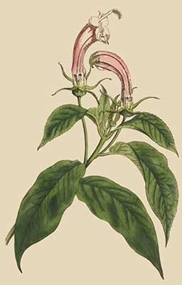 The Lobelia surinamensis, a plant newly introduced here, is minutely described in the Suppl. Pl. of the younger Linn?us, under the name of l?vigata, apparently from the smoothness of its flowers in the year 1786, Mr. Alexander Anderson sent this plant to the Royal Garden at Kew, from the West Indies, where it grows spontaneously, as well as at Surinam, and Mr. Aiton has inserted it at the end of the Hort. Kew. assigning to it a new specific description, and a new trivial name our drawing was made from a plant which flowered in the stove of Messrs. Grimwood and Co. Kensington, to whom it was imparted by Richard Molesworth, Esq. of Peckham, a gentleman liberal in his communications, and anxious to promote the cause of Botany.This species of Lobelia is a stove plant, having a some *what shrubby stalk, growing to the height of several feet, its blossoms are very large, of a pale red colour, and its Anther?, which might be mistaken for the stigma, unusually hairy.It begins to flower in January and February, and continues to blossom during most of the summer.Is increased by cuttings.
