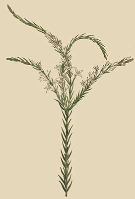 The plant here represented appears to have been first described and figured by Burman, in his Pl. Afric. under the name of Passerina Linn?us introduced it in the 3d edition of his Sp. Pl. by the title of Passerina dodecandra, discovering afterwards that it had in reality only four stamina, and that the other eight substances, mistaken for such, were so many glandular nectaria, he made in his Mantiss. Plant. a new genus of it, by the name of Struthiola, and assigned it the trivial name of erecta, in the abbreviated generic description given of it by Prof. Murray, an alteration is made in this generic character, and what before was considered as Corolla, is here regarded as Calyx, no reason is assigned for this alteration, and we are at a loss to account for the propriety of it.Mr. Miller, who cultivated this plant in 1758, describes it in his dictionary, and observes very justly, that though its branches when young are erect, when loaded with blossoms they incline to a horizontal position, hence the term erecta becomes an improper one, and should be changed for one more expressive.This species of Struthiola is a very common shrub in our greenhouses, will grow to the height of five or six feet, and, though not so ornamental as some other plants, has the merit of flowering during most of the year, and often in the depth of winter.Is readily increased by cuttings.