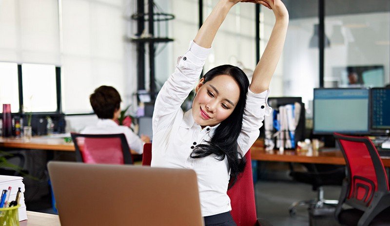 Muscles that stay in the same position for long hours as they do when you work at a desk without a break eventually weaken and become prone to injury as the body ages. Stretching at your desk helps keep the muscles limber and boosts your productivity by increasing circulation to the brain for a wake-up effect and a shot of feel-good hormones.