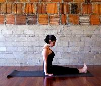Roll up a blanket and place it on the floor. Lie on your back with the blanket level with where a bra strap would be, under the lower part of the shoulder blades. Spread out your arms at shoulder height, palms up. Lie in position, breathing, softening your chest and spine.