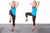 2. Place your hands on your hips and make circles with your pelvis. Move your hands to your knees and make circles in both directions.