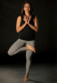 To strengthen the legs and ankles and bring confident balance, start in simple strong standing. Ground your feet (see No. 372). Keeping your left leg really firm, raise the right foot a little off the ground. Lift it higher (using hands if necessary), placing the sole as far up your inner left leg as you can. Press the foot and the leg toward each other. To keep from wobbling, fix your gaze on an object or place one hand against a support. When you feel secure, stretch one or both arms overhead. The more you stretch, the easier the pose. Breathe. Come out of the pose slowly and under control and repeat the moves with the other leg.