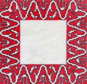 Assisi embroidery is a counted thread embroidery technique. In Assisi embroidery, the work is done on even weave linen, and the background of the design is filled with long armed cross stitch or regular cross stitch, while the focal image of the design is left voided (or empty). An outline is stitched around the various elements of the design. This outline can be worked in backstitch or even in outline stitches such as stem stitch or outline stitch.