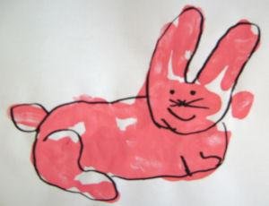 Heres a cute handprint bunny that the kids can print in a flash! Only one colour to clear up, too.
