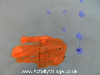 Quick, easy and fun for little kids, this handprint goldfish nevertheless looks effective on display! Of course you could make a whole school of fish this way for an underwater scene, too.
