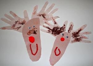 These hand and footprint reindeers make lovely momentos. Why noy use them to make a card for Grandparents?