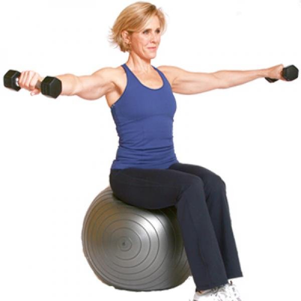 Your deltoids surround your shoulder and have three specific muscles: anterior delt, medial, and rear. To really shape your shoulders, you must hit all three of these areas. Try your alphabet T, U, Vs to tone this area T raises (pictured here) hit your medial delt. Do 15 arm raises to the side and then hold the last one for 30 seconds. Lower and repeat the set.U raises are a forward push extending the elbow overhead. Perform 40 overhead presses with light weights.V raises are done on a bench lying face down. Start with hands together at the bottom in front of the bench and raise up to a wide position. Perform 15 repetitions and then hold the last one for 30 seconds. Lower then repeat the set.