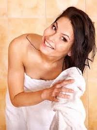 And let the cotton absorb the moisture for a few minutes instead of rubbing. This helps protect against split ends.