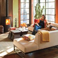 Take your decorating cues from your surroundings. This home is on a lake surrounded by trees. Moss greens and mushroom browns paired with a twig and bark side table truly bring the outdoors in.