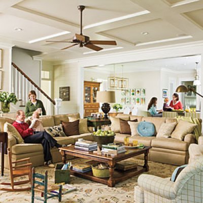 The easy flow between family room and kitchen is welcoming to all ages and offers plenty of room for this homeowners extended family, friends, and groups from church to gather. This contiguous space is the heart of their house.