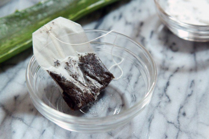 The tannin in tea bags reduces swelling and discoloration. Lie down, preferably in the morning, and leave the cool and damp caffeinated tea bags over your eyes for about 1015 minutes. Keep your eyes closed. You can refrigerate them overnight so they will be ready in the morning.