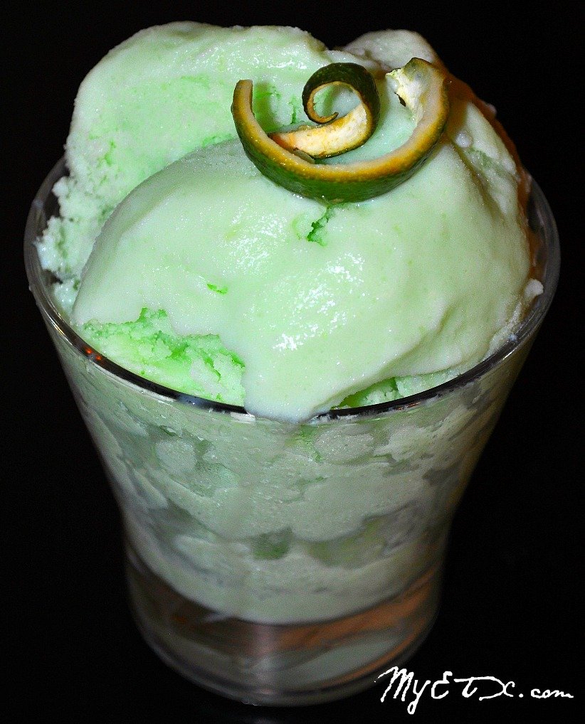 Lime sherbet combines the ingredients of lime sorbet with dairy, in the form of milk or heavy cream. You get to keep the sweet and tart fruit flavor of the sorbet while adding some of the great benefits of ice cream. Citrus fruits like lime and orange are classic flavors for sherbet. Try making both of them and swirling them together to make your own rainbow sherbet.