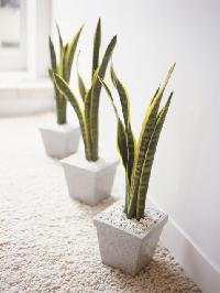 This plant is also sometimes known as mother-in-law's tongue! It has variegated leaves that grow upright, and some varieties leaves have yellow or white edges. It has small white flowers that bloom only rarely.