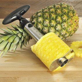 Pineapples are a pain to peel unless you have this handy corkscrew like gadget.