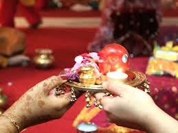 Women begin preparing for Karva Chauth a few days in advance, by buying cosmetics (shringar), traditional adornments or jewelry, and puja items, such as the Karva lamps, matthi, henna and the decorated puja thali (plate). Local bazaars take on a festive look as shopkeepers put their Karva Chauth related products on display. On the day of the fast, women from Punjab awake to eat and drink just before sunrise. In Uttar Pradesh, celebrants eat soot feni with milk in sugar on the eve of the festival. It is said that this helps them go without water the next day. In Punjab, sargi is an important part of this predawn meal and always includes fenia. It is traditional for the sargi to be sent or given to the woman by her motherinlaw. If the motherinlaw lives with the woman, the predawn meal is prepared by the motherinlaw.
