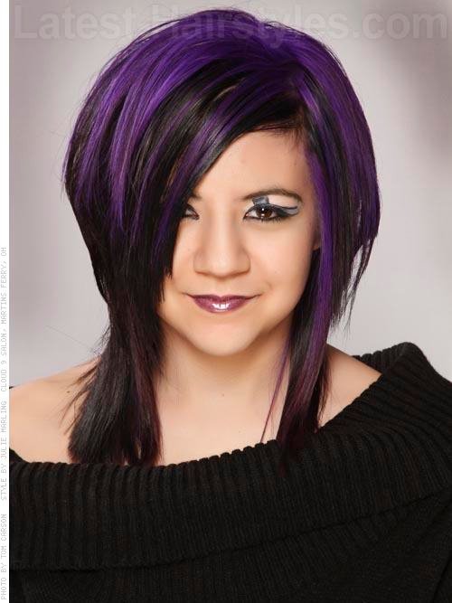 Dark brown to black hair with an overlay of vibrant violet is eye catching and right on trend