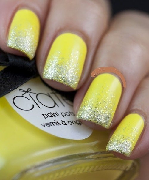Get an easy gradient by applying a glitter top coat to half the nail.