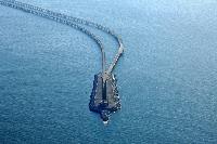 Donghai Bridge is one of the longest cross sea bridges in the world. It has a total length of 32.5 kilometres (20.2 mi) and connects mainland Shanghai and the offshore Yangshan deep water port in China.